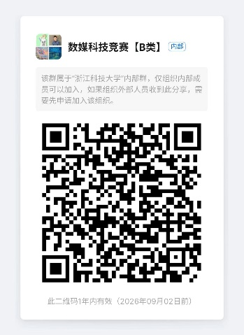 指导老师请添加 “数媒科技竞赛【B类】”钉钉群:109605031124或扫描二维码