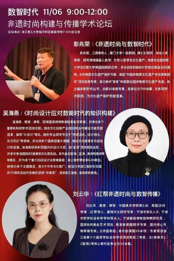 与中国美术学院、浙江理工大学等高水平大学之间的交流与合作,刘云华教授为数智化时代非遗文化的时尚构建与传播提供了建设性意见。